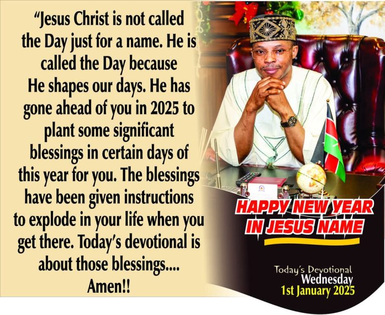 TODAY’S DEVOTION (Wednesday 1ST January 2025) “Jerusalem, the time is coming, when it will be said to you: “Don’t be discouraged or grow weak from fear! The Lord your God wins victory after victory and is always with you. He celebrates and sings because of you, and he will refresh your life with his love”…