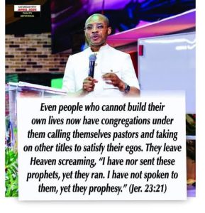 Even people who cannot build their own lives now have congregations under them calling themselves pastors and taking on other titles to satisfy their egos. They leave Heaven screaming “I have not sent these prophets, yet they ran. I have not spoken to them, yet they are prophesying” (Jeremiah 23:21).