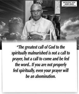 The importance of spiritual feeding cannot be over emphasized. Sadly, many churches do not feed God’s people. They only fool them. If there is any time to quit Churches where they do not feed you but practice charismatic witchcraft and sorcery on you, it is now!