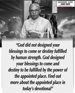 Friend, God did not design destiny to be fulfilled by the power of human force. He designed destiny to be fulfilled by the power of the appointed place. Divine destiny is not something you force out or train yourself to execute. It was not designed to be fulfilled that way.