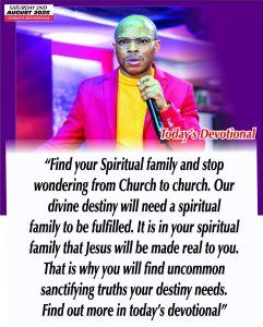 Your destiny will not need such people to be fulfilled. Be part of those who seek nurturing by all righteous means. Be part of those who understand that until God gives one the gift of a spiritual family, he or she will not have the ideal nurturing to release their divine destinies.